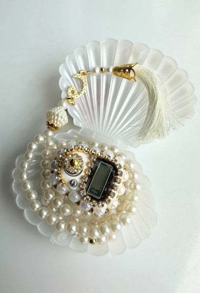 İstiridye kutulu inci Tesbih ve Kristal Taşlı Zikirmatik Hediye Seti ✨
