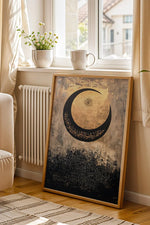 Modern Hat Sanatı Altın Ay Çerçeveli Tablo - Ramazan Özel Seri Eskitme Dokulu Duvar Dekoru