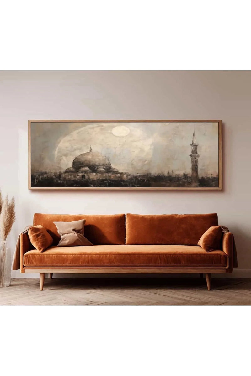 Tek Parça Gerçek Ahşap Yatay Panorama Çerçeveli Tablo ramazan